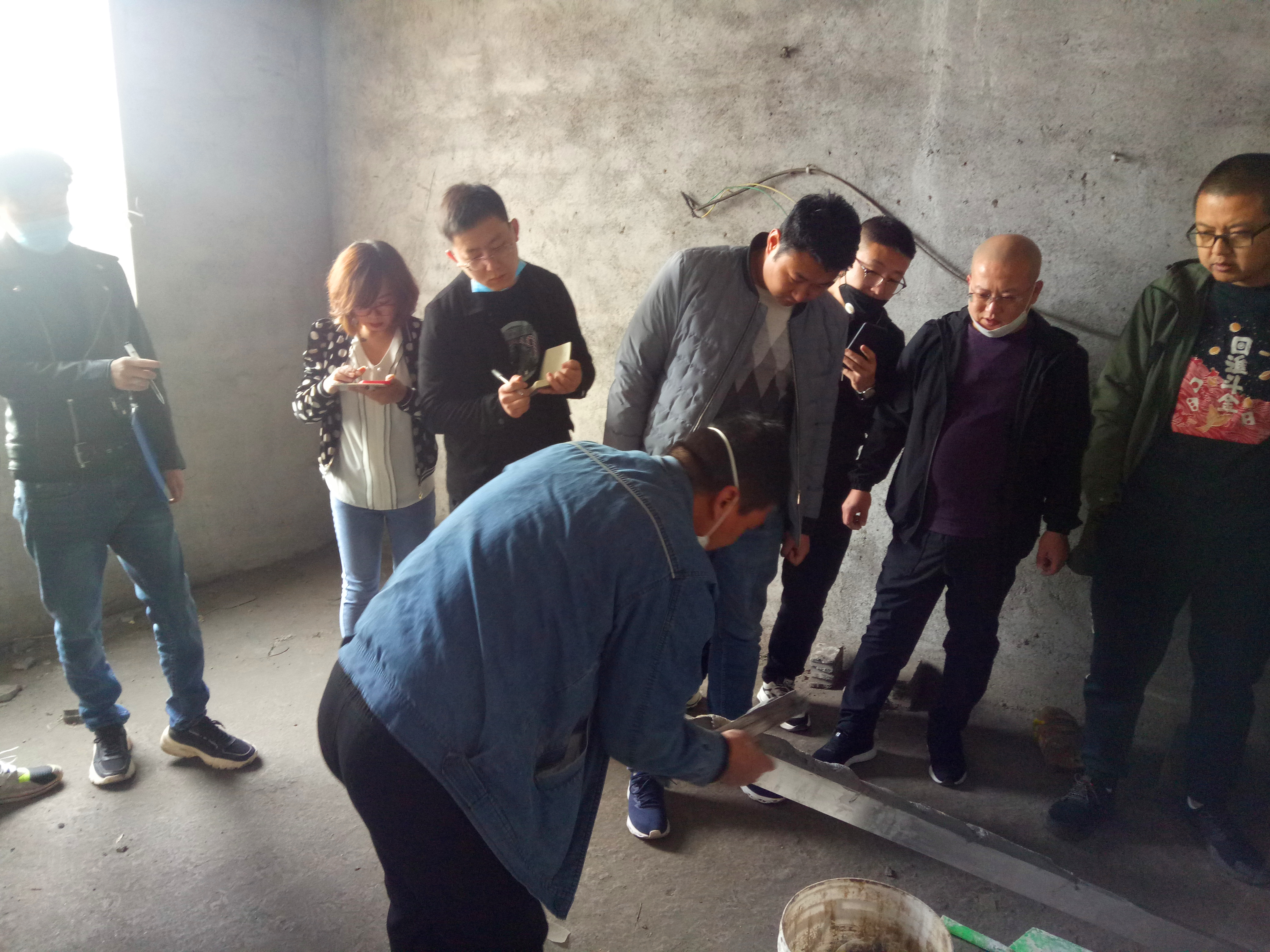 營銷部特地從市場上選取了9種品牌的抹灰石膏樣品與自有的3種產(chǎn)品進(jìn)行測試,并從河南專門邀請了資深技術(shù)工人現(xiàn)場操作;建材研究院與營銷部相關(guān)人員詳細(xì)記錄實測數(shù)據(jù),并時時詢問技術(shù)工對于每個產(chǎn)品的使用性能感受;晉寶靈生產(chǎn)經(jīng)理王為福帶領(lǐng)相關(guān)人員在現(xiàn)場做好供水、供電及后勤保障工作,確保產(chǎn)品實測穩(wěn)定進(jìn)行。