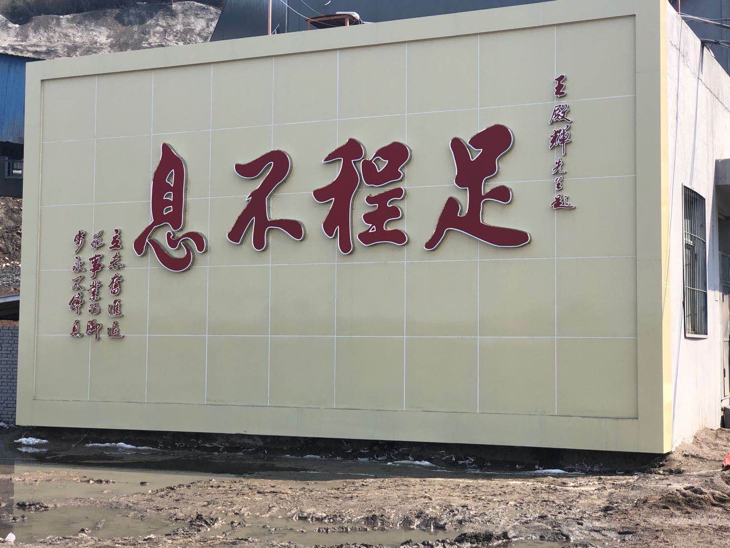 新的一年新的氣象,王殿輝董事長(zhǎng)寫下的“足程不息”在礦區(qū)醒目位置悄然樹(shù)立,天行健,君子以自強(qiáng)不息,鍥而不舍,金石可鏤…讓每位新加入我們大家庭的員工們都能知道我們聚義的精神。